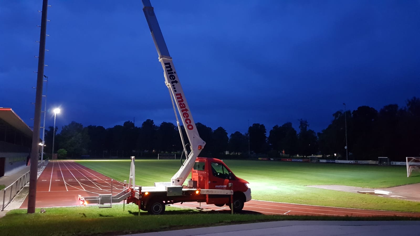 Übersetzt heißt das, auf unserem A-Platz steht seit letzter Woche eine nagelneue Flutlichtanlage mit moderner und energiesparender LED-Technik, die jeden qm des Platzes mit einer Beleuchtungsstärke von 75 Lux ausleuchtet. Ein Quantensprung in Sachen Ausleuchtung und nicht zu vergleichen mit den alten, stromfressenden Leuchten von anno dazumal. Doch nicht nur der A-Platz erstrahlt in neuem Licht, sondern auch im Stadion und auf dem Bolzplatz wurden auf je zwei Masten das Lauflicht bzw. das Trainingslicht modernisiert.