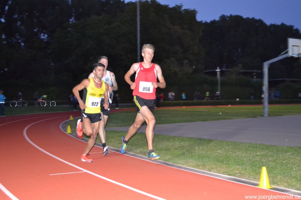 Vom Start weg zeigte der 20-jährige ein beherztes Rennen. In einer Verfolgergruppe laufend musste er ca. 450 m vor dem Ziel etwas abreisen lassen. In 5:44,16 min konnte er seine Bestleistung aus 2018 von 5:57,93 min deutlich verbessern. Im Gesamtranking landete Flo in dem sehr gut besetzten Rennen auf Rang 8. Sieger des Rennens wurde der Deutsche Hindernis-Meister von 2019 Karl Bebedorf in sehr guten 5:26,81 min. Der den deutschen Rekord nur knapp verfehlte. Wie bei den deutschen Meisterschaften 2019 kam der Ex-Höchstädter Martin Grau, der nun für Erfurt startet, in 5:30,86 min auf den zweiten Rang.
